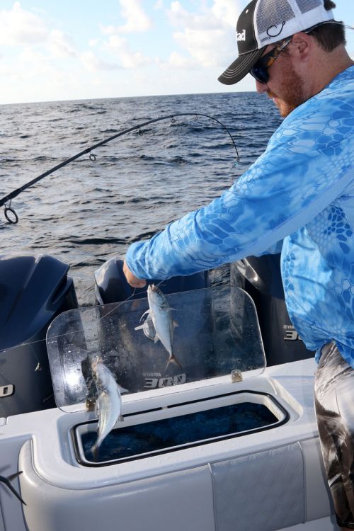 “It’s better to use live bait when the fish are being aggressive and you can keep them up high in the water column,” Wells said. “When you’re marking them really good, but they aren’t on the surface and not eating live bait, then it’s time to chum (and fish chunk baits).”
