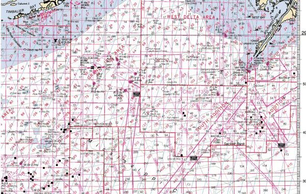 These charts, however, are in a scale of 1:456394, which is not suited for navigating the channels or the river, but will get you to the leased blocks. For a better view of the access channels select a chart with at least 1:80000 scale.