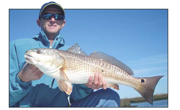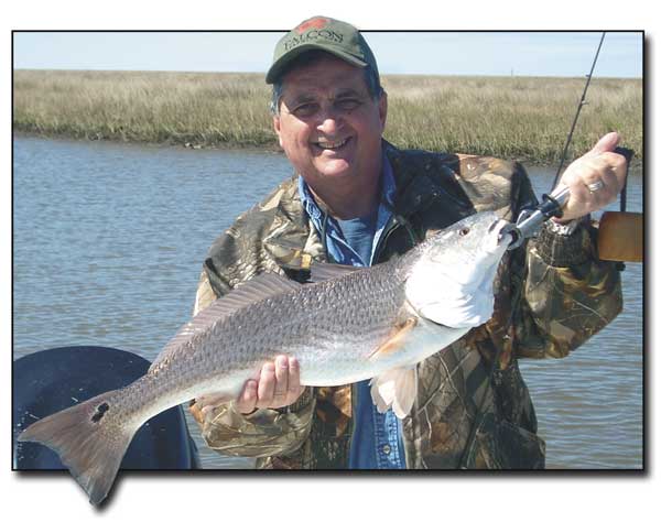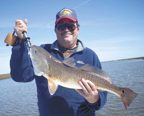 But by standing atop the trolling motor bracket and adding a 6- to 8-inch height advantage, and by staring through a good set of polarized lenses, Dufrene saw what we couldn’t. He would point toward the shoreline and say, “Cast right there, 2 feet off the bank,” or “Cast here, or cast there.” We were “fishing blind,” but we’d cast where he pointed, and as often as not, we’d hook up with redfish. And these were big boys, averaging 9 to 12 pounds each.