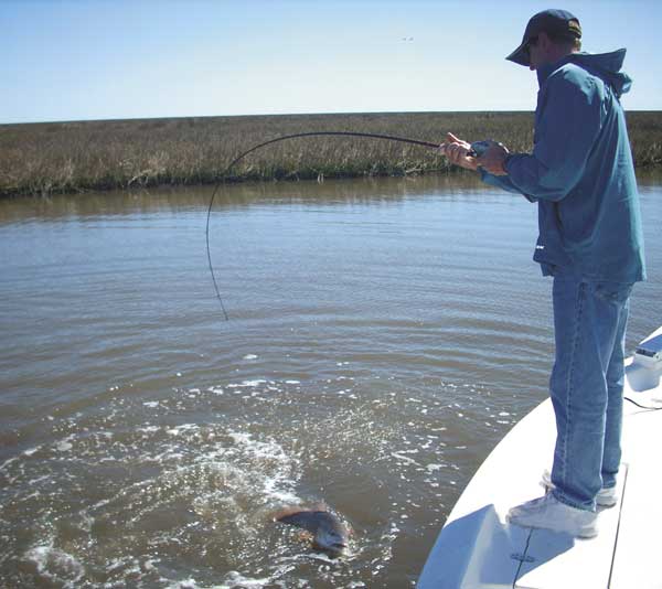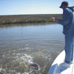 On several occasions we’d hit a bare stretch of shoreline where there were no signs of redfish or bait in the water. Dufrene would either troll out of those ponds or crank up the outboard and putt-putt to a deeper channel, and then move to another pond. You don’t beat a dead horse, and you don’t burn daylight beating a barren shoreline. So another key to success is simply to keep moving.
