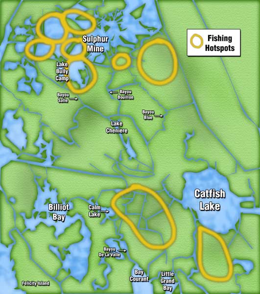 The best action this month is the ponds all around the Sulphur Mine or to the south and southwest of Catfish Lake, Dufrene said. There are fish in other ponds that are on private property, and anglers should avoid those areas. But there is no scarcity of fish or of ponds to fish in, he said.