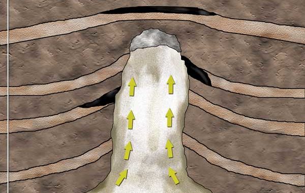 Salt domes are a reminder of the ancient Gulf of Mexico that once covered all of Louisiana. The Gulf has fluctuated greatly over millions of years, and sometimes parts of it dried up, leaving a layer of salt and other minerals on the exposed ocean floor. This salt later was covered up by sediments, and today is about 10 miles beneath the ground surface. The incredible weight of so much material exerted a downward pressure and in some places squeezed the salt upward like toothpaste into tall vertical columns known as salt domes.