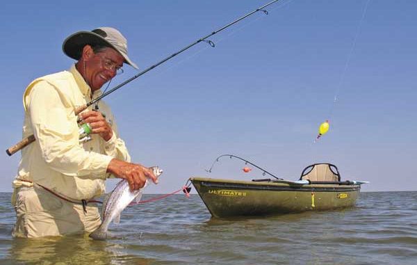 Catching trout and reds from kayaks is a sport that’s booming in popularity, especially now when anglers need a bank loan to fill up their fuel tanks.
