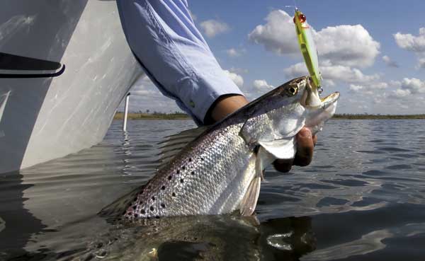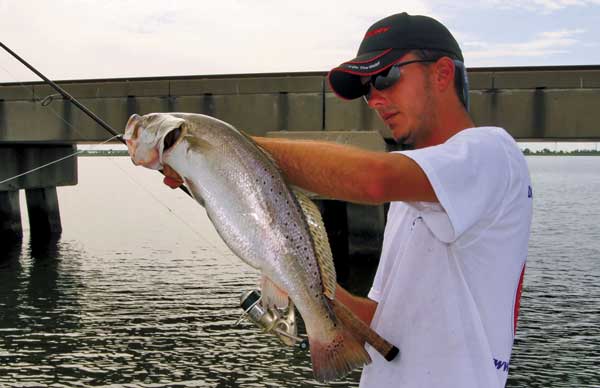 “Working an area slowly and carefully is the way to catch those 7- to 9-pound trout,” he said. “When you fish a piling, make sure to cast all the way around it because you never know how a fish will be positioned on it. I try to hit four or five different angles on every piling I fish.”