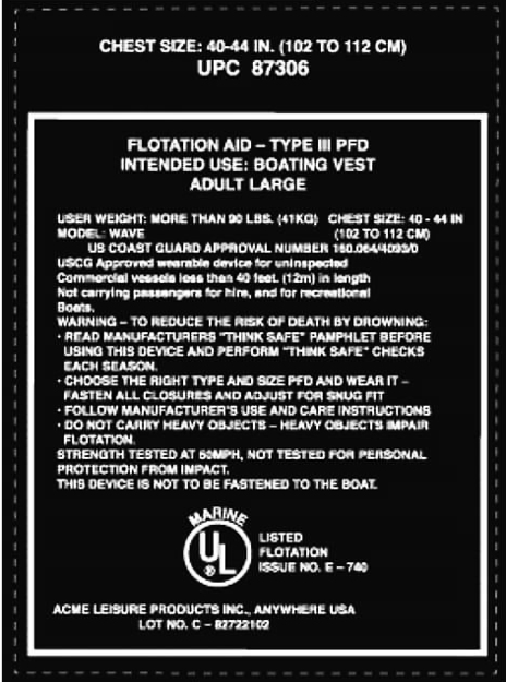 In the United States and on navigable waterways, a Coast Guard approved life jacket, properly fitted for the intended wearer must be aboard for each occupant. Therefore, knowing your life jacket is approved by the Coast Guard to meet carriage requirements is important. You’ll find this information, as well as testing approval numbers and manufacturer information in this section of the label.