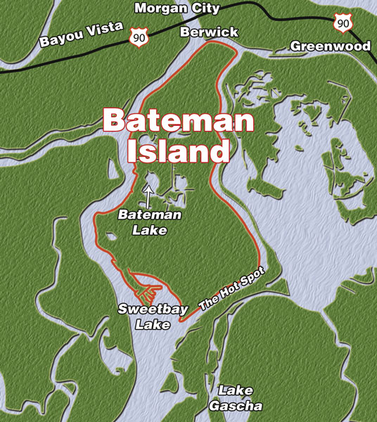 What bass anglers will find on Bateman is what they typically find in the marshes down the Atchafalaya River below the Intracoastal — lots of structure in the form of logs, cypress and tupelo tree stumps, roots and other semi-submerged manmade oilfield apparatus.