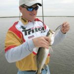 “Get close to the bank and cast out, and don’t let the oyster-boat traffic discourage you. The fish are used to it, and the boat traffic scatters the bait and keeps the trout moving.