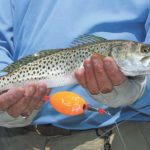 “I like to use the Saltwater Assassin Kwik Cork with the brass beads, which make a loud clacking sound when fishing for reds or trout in dirty water,” he said. “I will use a cork without the beads for a more stealthy approach for both trout and reds in cleaner water.