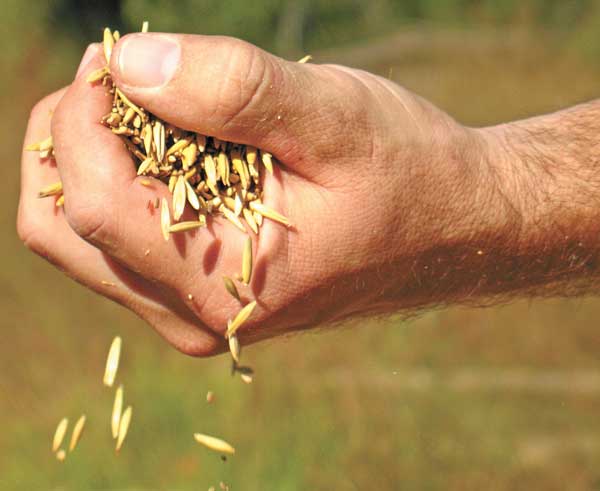 Oat sprouts sprang up just six days later, and the tracks in my plot were all the evidence I thought we needed that we were on the right track. Then the rains came. It rained extremely hard the night of Oct. 25, and much of the seed that hadn’t taken root washed into any little depression or trough it could find. My winter peas were essentially washed away.