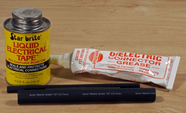 I brush liquid electrical tape on connections where heat shrink tubing can’t be used. A layer of liquid electrical tape on the tightened nuts, washers and posts of a fuse block’s main positive and ground connections keeps them corrosion-proof and tight. A dab of dielectric grease (available from auto parts stores) on the fuse blades, and on the push-on connector sleeves and fuse block blades also helps prevent corrosion.