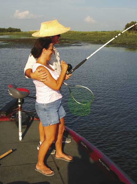 Once she got the bait out there consistently, it didn’t take long before her distance and accuracy improved. With each cast, her determination increased as reds swirled along the banks of the canal’s inlet from the bay. Suddenly, her efforts paid off as a red grabbed her spinnerbait, and the fight was on.