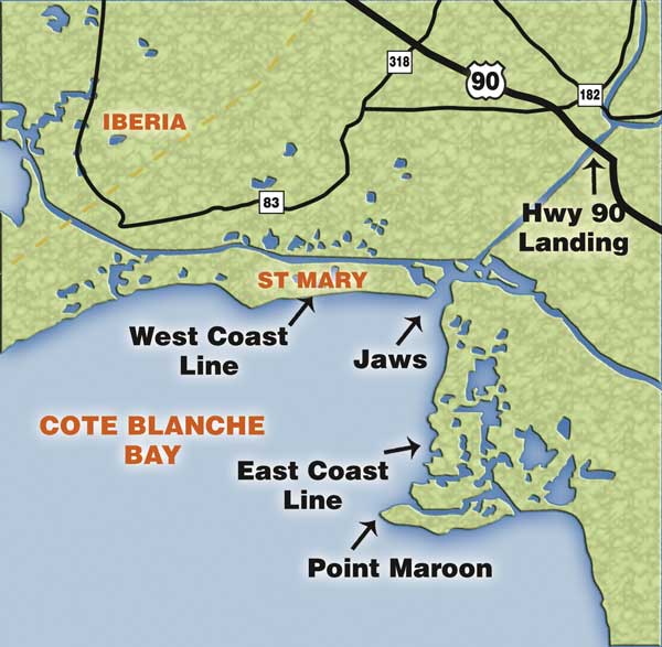 Exactly why it doesn’t receive much attention may be because of perceived better locations. Areas such as the Burns Point, a few miles to the east in East Cote Blanche Bay, Cypremort Point a few miles to the west, Marsh Island and Vermilion Bay further west tend to be better known.