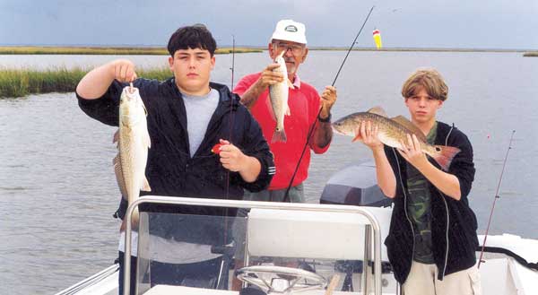 We anchored at three more spots almost identical to the first one as we made our way up Muscle Bayou toward Bayou Biloxi, and closed out with 11 reds (seven of them over 6 pounds), two more drum, four more flounder along with those first two school specks — far from a three-man limit, but we had a trip fishermen from anywhere in the U.S. would drool over.