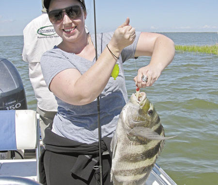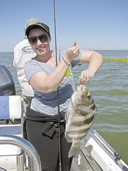 The school speck and sheepshead were hugging the ledge amidst a small school of their brethren — typical for inside fishing this time of year. We were fishing a ledge of what used to be Bayou Au Fer where the water went from 2 to 7 feet, according to the depth-finder. But not according to anything visible on the surface.