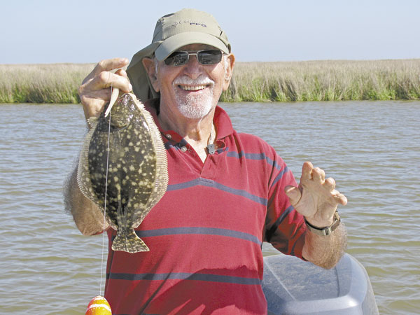 Working around another point with shrimp-tipped beetles, we added three more reds, half a dozen school specks, three puppy drum and two more flounder to the box. After another dozen mixed fish caught after a couple more stops in identical current-washed grassy settings, the action finally slowed.