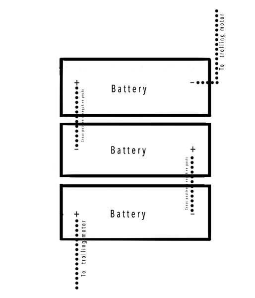 That creates a 36-volt system. Of course, if you are more comfortable keeping a dedicated cranking battery, just ignore the first step and cross-connect your three trolling batteries exactly as stated above.