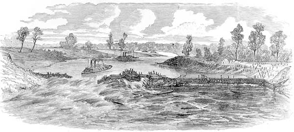 Porter had few options, however, and he and Banks agreed to give Bailey a chance. Soon, thousands of Union soldiers were working furiously on the project. On the Pineville side of the river, the dam was constructed from felled trees, while on the Alexandria side, cribs filled with rock and material taken from torn-down buildings were sunk in the river.