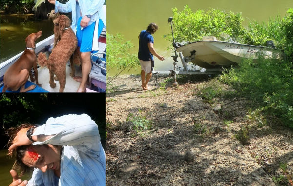 After a great morning of bass fishing with three puppies aboard, I trailered my boat using my camp’s launch, and when I went to unhook the trailer, things went downhill – literally.