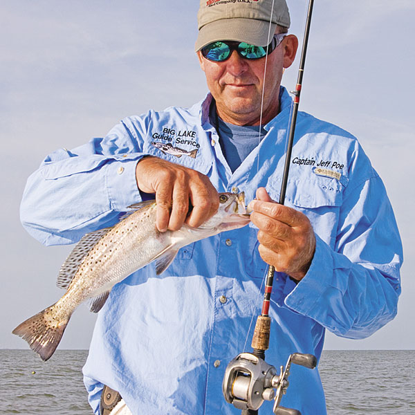 “Trout could be anywhere out on this giant reef,” Poe said, “but if you want to make sure you’re in the right spot, get on the inside edge of the reef. That’s the spot I’ve got marked on my GPS, and I only mark spots that have been good to me in the past.”