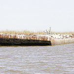 This is the barge that broke away from the mooring mentioned earlier in the second spot. As it pushed toward the north after Hurricane Katrina, the barge jammed against a small island where it still lies today. The barge is clearly visible on post-Katrina overhead maps and Internet satellite imaging.