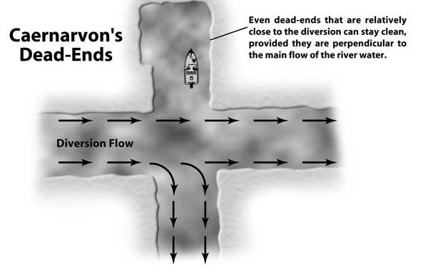 That’s because the fast-moving water coming through the diversion will often “pass up” certain dead-ends without eddying any water into them.