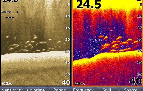 Generally speaking, higher operating frequencies deliver better screen detail but don’t penetrate depth as well. In contrast, lower frequencies deliver poorer detail but penetrate depth much better. This is true for conventional down-looking, high-definition down-looking and side-looking sonar.