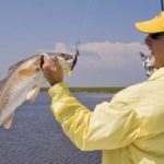 According to Lawson and Williams, the two best times to fish Bay Six during the summer months are early in the morning and late in the evening. Redfish like to move toward the surface during both periods, and that’s when they’re most frequently seen actively feeding in the shallow water.