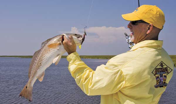 One thing that Williams has noticed about the Bay Six redfish is that they don’t gang up like they do in places like Lake Salvador. Rather than seeing big schools of five, 10 or even 15 fish, he says you’re more likely to see isolated fish that are more spread out.