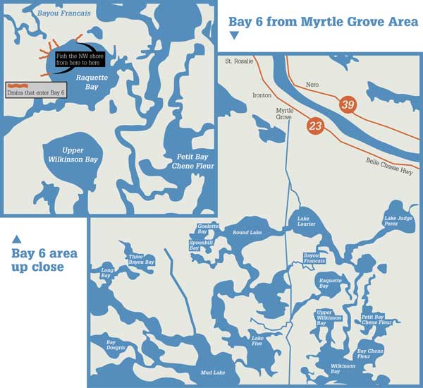 I had heard of Bay Five before; it’s prominently labeled on most any map of the Barataria system, but Bay Six? Never even heard of it.
