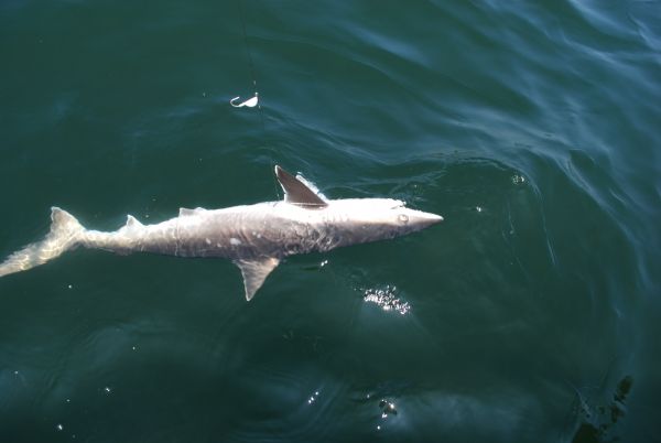 A dead identification giveaway is that Atlantic sharpnose sharks carry several very noticeable thumbprint-like white spots on each side of their body. No other shark has these spots.