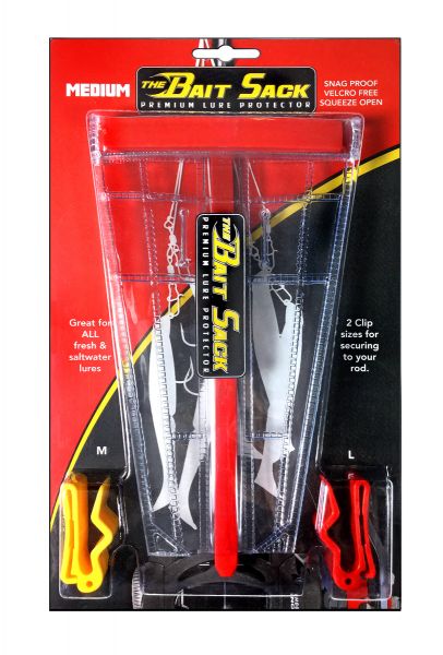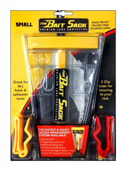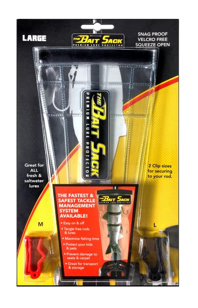 The Bait Sack is a secure lure protector that will shield your tackle from damage and untimely tangles. It will also protect you and the people you fish with from injury.