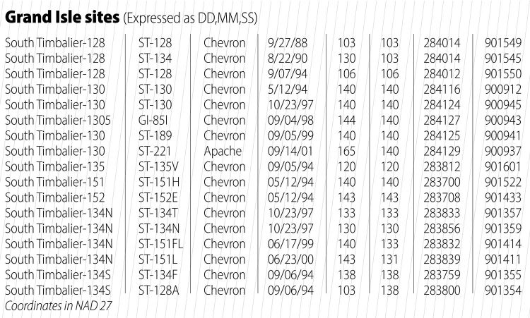 As you are concerned with the Belle Pass (Grand Isle) area, here is the info that I have on them: