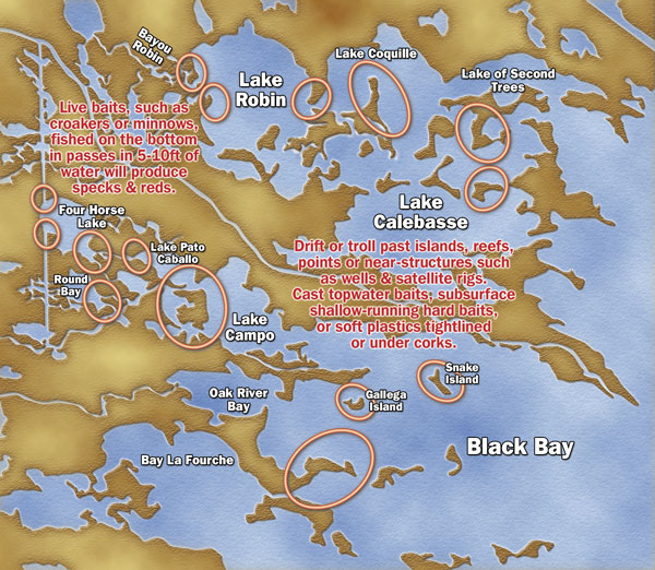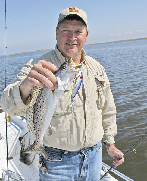 “Four Horse, Oak River, False River, Sister Bayou, Whiskey Bayou, Bay Lafourche — all are good choices,” he said. “On windy days when you can’t get outside, fish the passes and bayous. Drop a live croaker on a sliding-sinker rig to the bottom, and see if you can connect with some hungry trout. If you can’t find live croakers, bring some live minnows along, or fish soft plastics along the bottom, and try under a cork as well.