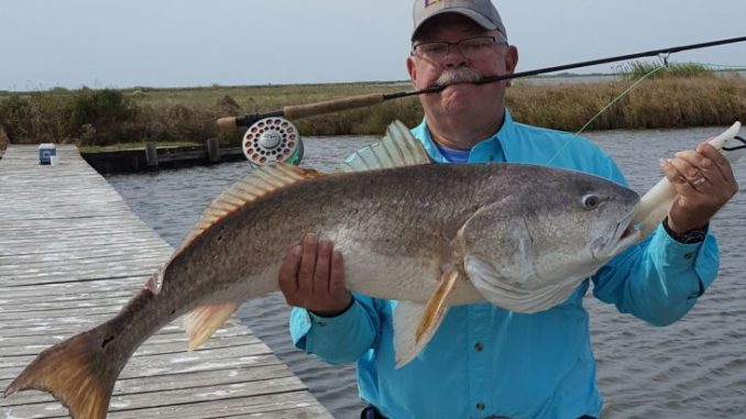 Fish of the Year — Back in November, Susan Foster joined her cousin, Edward Cates of Converse, for a trip to Marsh Island. While enjoying lively action on white trout on fly rod, Edward hooked up with something really big.