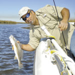 “If you are specifically targeting redfish, I’d suggest the north shoreline of Bakers Bay, or the windy side of Oak River Bay, if it’s not too rough. Green sparkle beetles tipped with shrimp and fished under corks are the ticket. I’d focus on cuts and points, and prefer an incoming tide over a falling tide, although you can catch fish on either one.