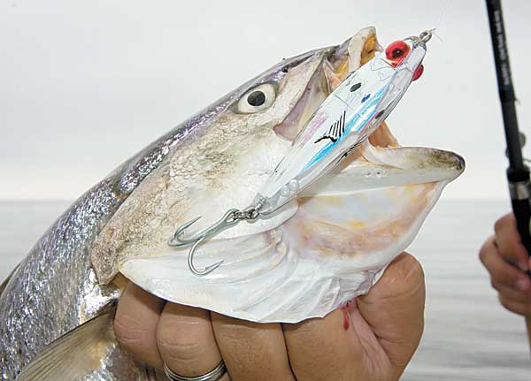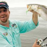“Glow and the black with chartreuse nose are my two favorites,” he said. “The fact that you can cast these topwaters a really long way makes them even more ideal for fishing under the birds because you can stay back and not disturb the fish. Conditions have to be right for the topwater, though, so if it isn’t calm, I’ll have to switch to the soft plastic.”