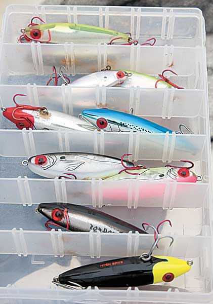 While admitting that just about anything will catch fish under the birds, Phillips says it’s hard to beat the topwater walkers, especially She Dogs. He says there’s something about the high-pitch sound this particular bait makes that drives the bigger fish crazy.