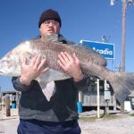 Some of the biggest black drum I’ve seen in Louisiana waters came from a most inconspicuous setting — the fuel docks of Belle Pass Marina at Port Fourchon. It was a blustery February morning, and rough weather had blown out all the yellowfin tuna trips.