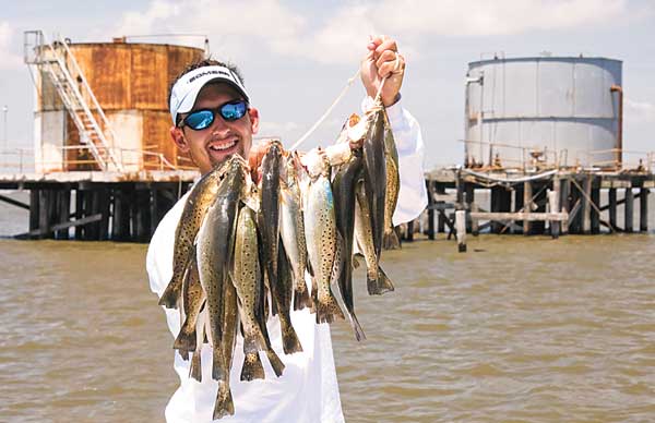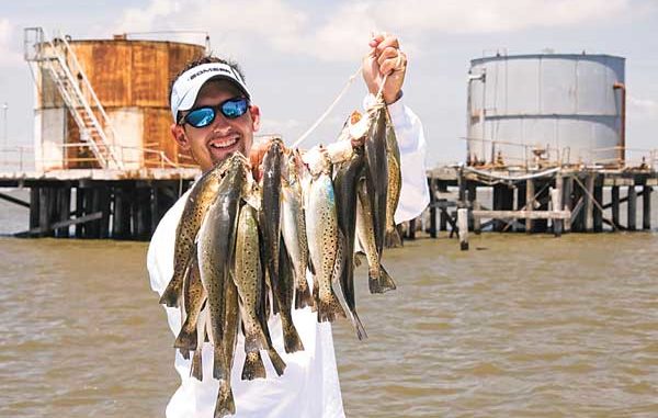 “The ones that still have the shell pads around them are the best rigs,” Rojas said. “The rigs are good enough structures themselves, but the clam shells definitely don’t hurt. The pilings hold barnacles and the shells hold bait. Of course, the trout are there to eat the bait.”