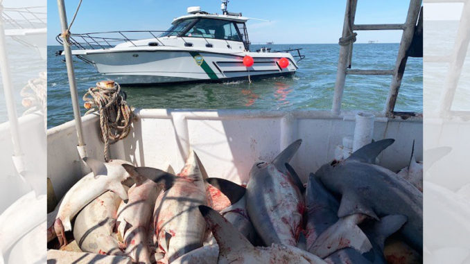 When the agents approached the vessel to make contact, they witnessed the captain and crew tossing large coastal sharks off the back of the vessel. When agents boarded the vessel they found the men in possession of 54 large coastal sharks. The men were only allowed to possess 45 large coastal sharks.