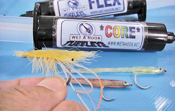 Many of Popovics’ ‘fleyes,’ including the Epoxy Shrimp, the Spread Fleye, the Bob’s Banger and the Surf Candy, are fashioned with or utilize epoxy. They’re also dynamite patterns for seatrout, Spanish and bluefish.