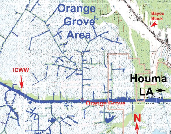 The Orange Grove area is located on the north side of the Intracoastal Waterway between Houma and Morgan City and on the north side by Bayou Black.