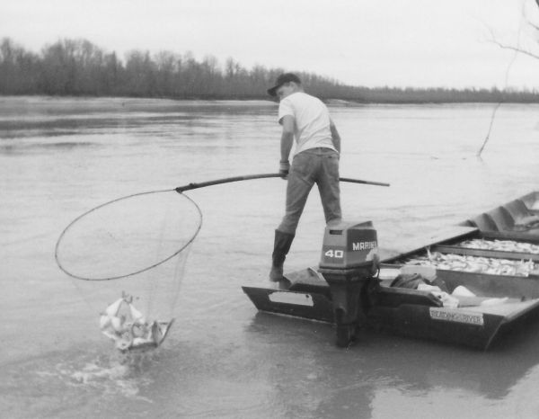 Some dips yield one fish or no fish. Others yield seven or eight shad. A day of backbreaking labor can yield over a thousand pounds of fish, all destined for sale as crawfish bait.