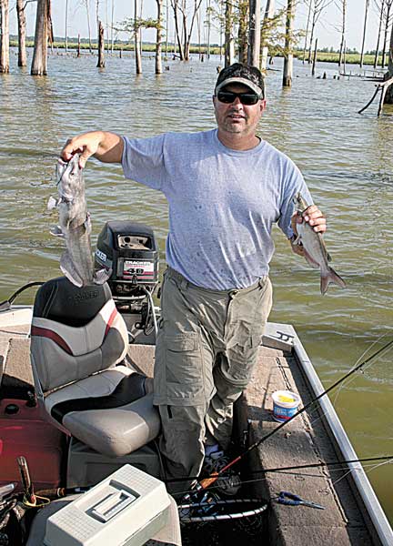 “One of the best places to find channel cats is under a cormorant roost,” he said. “Some of the tall dead cypress trees are popular roosts, and the catfish will bunch under them.”