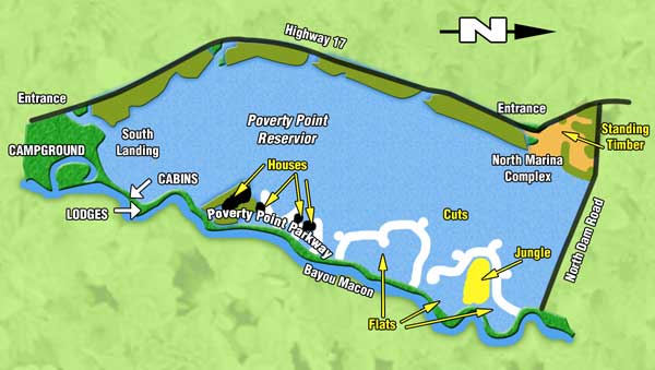 “Poverty Point has open habitat; there’s not a lot of grass or timber,” he said. “When you have open habitat and a large shad base, you wind up with lots of channel cats, crappie and yellow bass. Those are open-habitat predators, and they thrive in lakes like Poverty Point.”