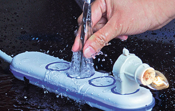 The new water-resistant power strip from Wet Circuits is made of protective materials which allow for continued indoor/outdoor use of plugged-in machines when faced with rain, snow, or an accidental spill.