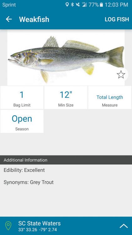 Is that a speckled trout or a weakfish? A black drum or a sheepshead? The fish ID section of the app shows crisp, color illustrations and photos and includes identification clues to help you figure out your catch.