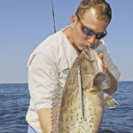 Black groupers grow larger than gags, often reaching 50 pounds and occasionally as large as 180 pounds. Besides being lighter in color than black grouper, gags have a slightly different tail shape. The back edge of a black grouper’s tail is squared off, and a gag’s is slightly concave.
