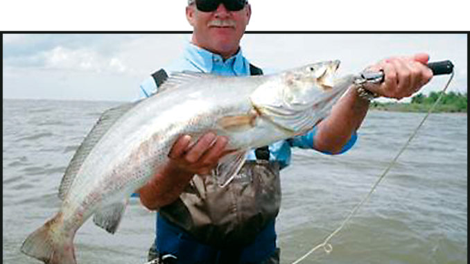 But there’s a growing faction of anglers who look forward to launching boats on Calcasieu and Sabine lakes when winter’s chill is not even a memory. And, like the Texas anglers they learned from, this group unceremoniously bails out of their boats to better their chances of catching a trout that no one would be ashamed to put on the scale or on the wall.