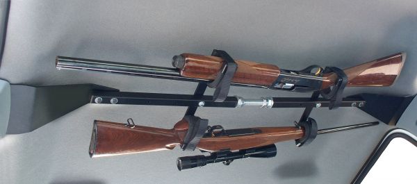 The Center-Lok Overhead Gun Rack from Great Day, Inc. fits most full-size Crew Cab pickups and holds guns securely in cushioned, moldable gun clips with Velcro straps.